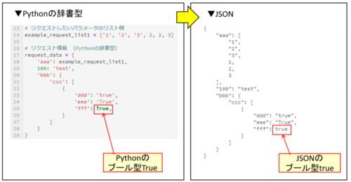 本記事では、Python辞書型をJsonへ変換して、ポストリクエストする雛形コードを載せました。(このサンプルは実在しないURLとリクエスト情報のため、ポストメソッド実行時にレスポンスのエラーになります。あくまで例のための雛形コードです) ■本プログラム…